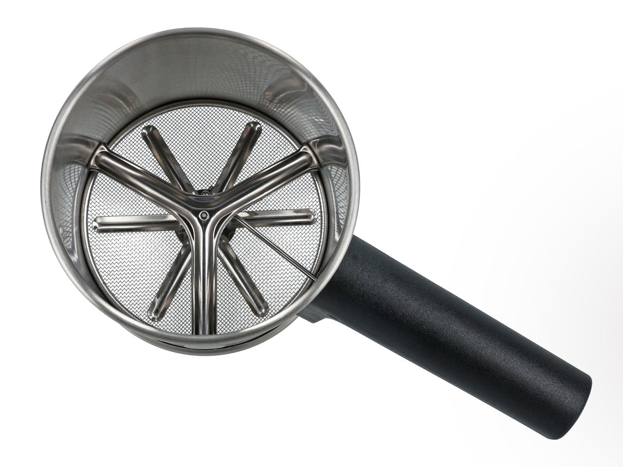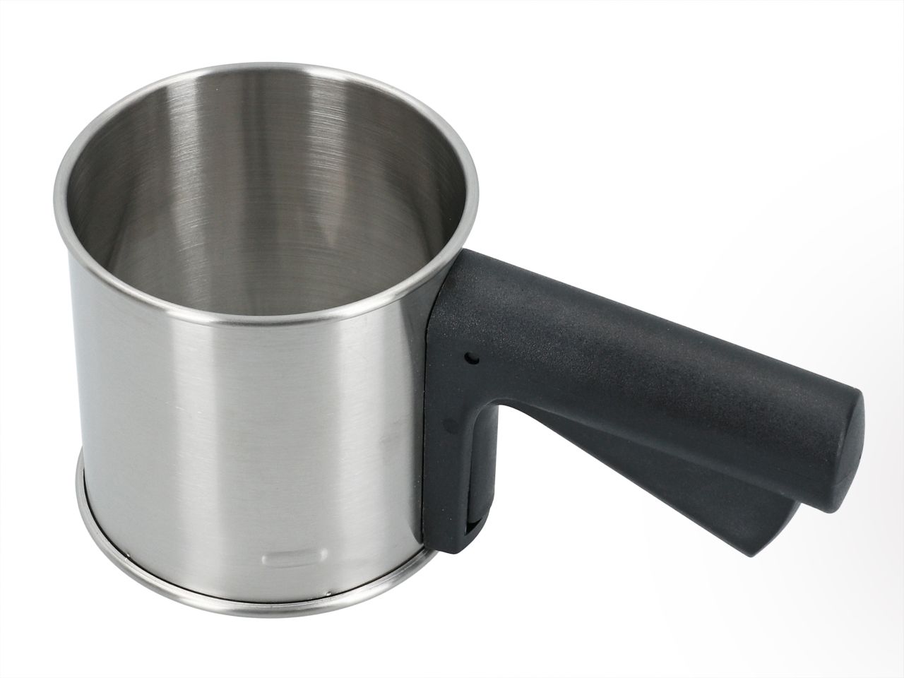 Mit diesem praktischen Einhandmehlsieb lassen sich Mehl, Puderzucker, Kakaopulver und weitere trockene Backzutaten besonders leicht und gleichmäßig sieben und dosieren. Dank der komfortablen Einhandbedienung ist es besonders einfach in der Handhabung. Es eignet sich ideal, um Mehl auf verschiedensten Arbeitsflächen gleichmäßig zu verteilen. Außerdem können mit dem Sieb Kuchen, Torten und Gebäck professionell dekoriert werden oder z. B. leckere Hauben auf Cappuccinos und vieles mehr gezaubert werden.