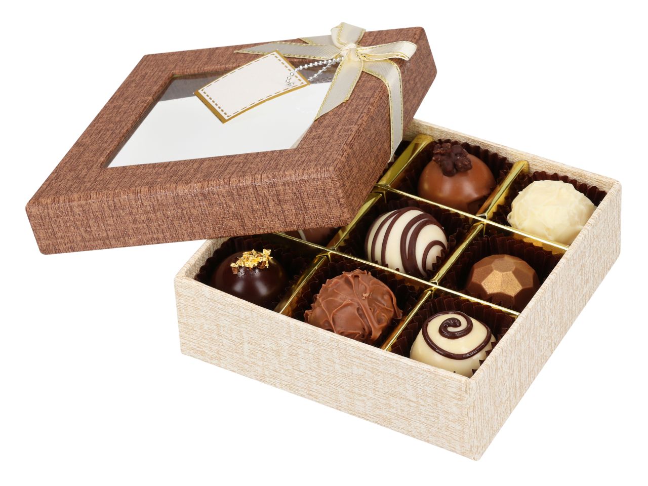 Im Lieferumfang sind die Pralinen und die Papierkapseln nicht enthalten.