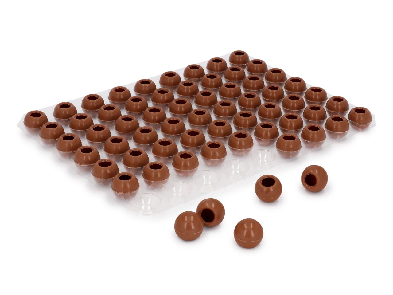 1 Folie mit 63 Hohlkugeln aus Vollmilchschokolade
