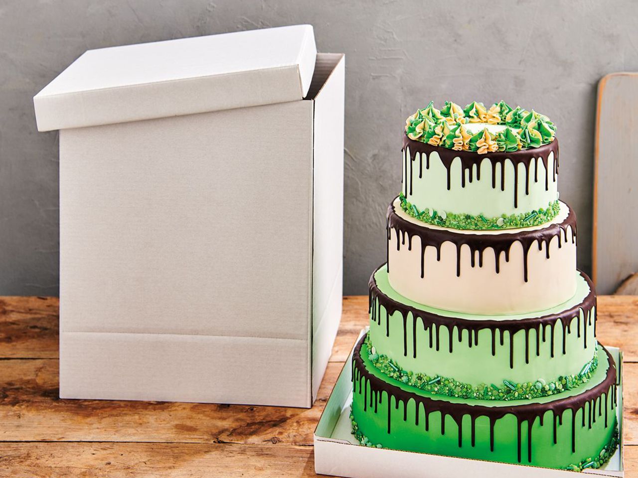 Diese große solide Tortenschachtel von FunCakes ist dank eines Klettbandes leicht zu falten. Die Tortenschachtel besteht weiterhin aus einem losen Boden und einem losen Deckel. Dadurch es ist einfach, große dekorierte Torten wie zum Beispiel Hochzeitstorten in die Schachtel zu stellen.